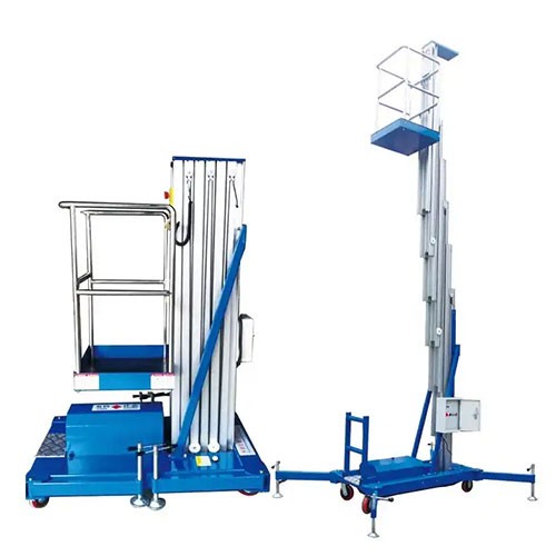 Aluminum alloy work platforms are classified into single-column, double-column and triple-column types. The height increase is available from 4 to 16 meters, and the series of products can carry a load of 130 to 300 kilograms. The equipment is widely used in factories, hotels, restaurants, stations, airports, cinemas, exhibition halls and other places. It can pass through ordinary lobbies and elevators and is extremely convenient to use